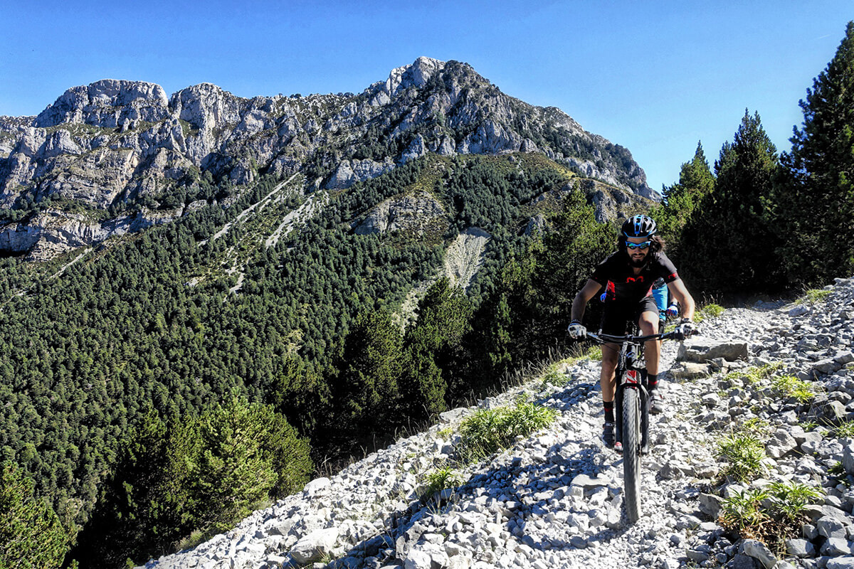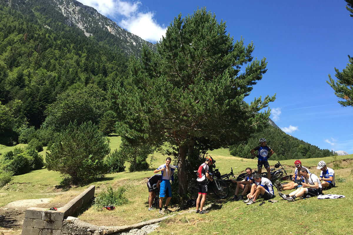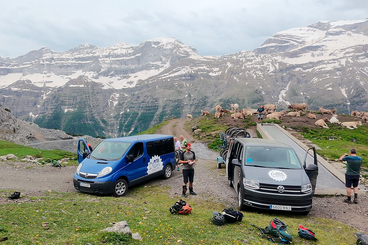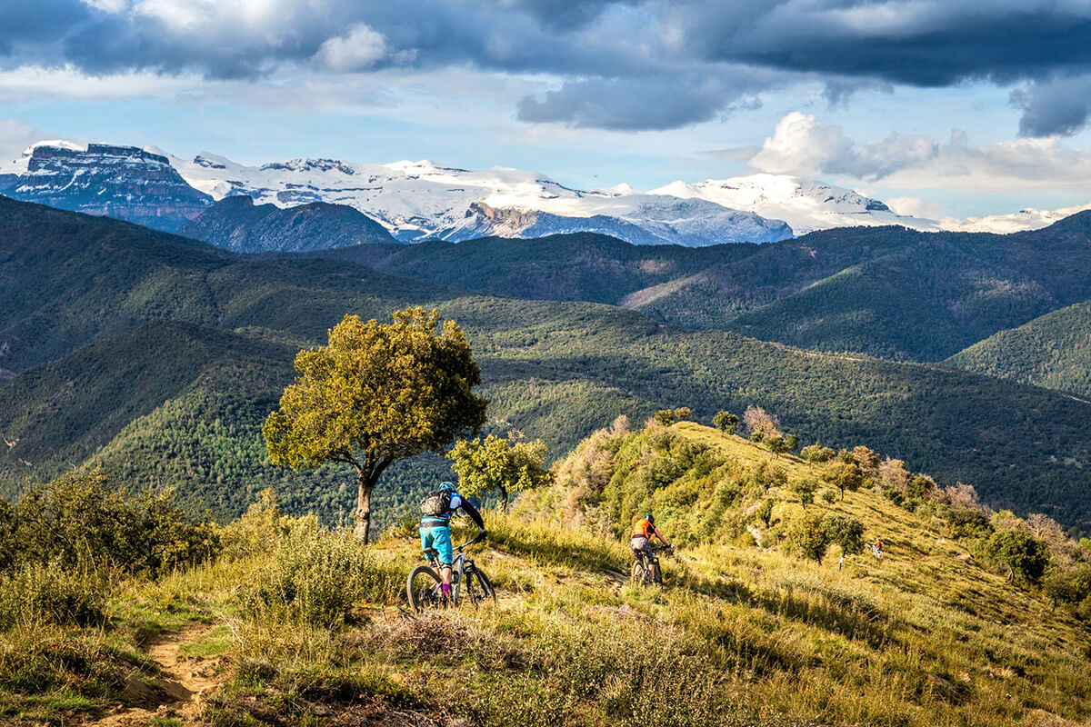 This tour begins in the charming towns of Ainsa and Bielsa, steeped in history and surrounded by endless opportunities for exploration. Then Benasque (home to Aneto, the highest peak in Pyrenees mountain range alt. 3.404 m). Discover lush forests, high-altitude singletrack, and free-grazing animals.