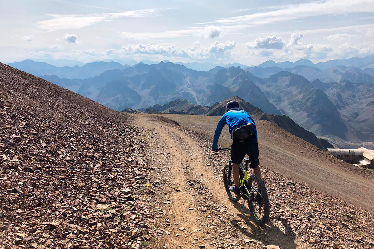 A true icon day in the high Pyrenees. We shuttle up to the Col du Tourmalet, beneath the legendary Pic du Midi, before starting a spectacular high-mountain MTB route.