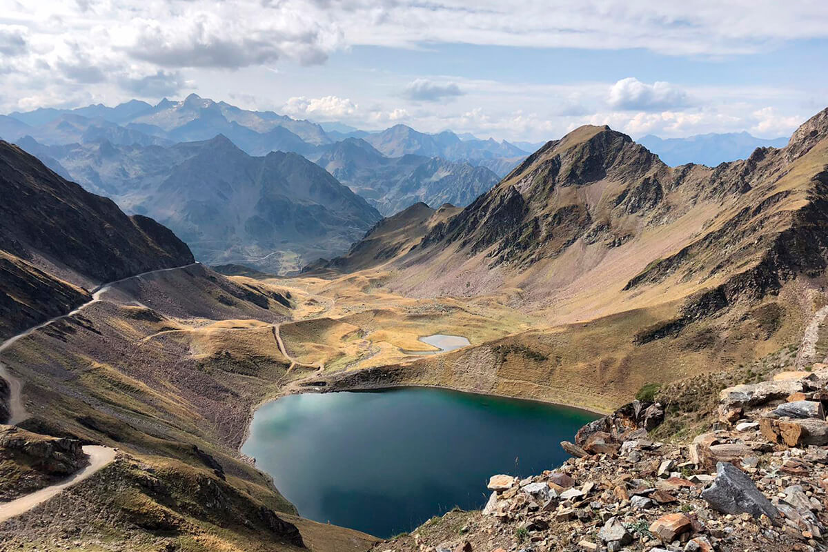 The trail passes above Lac Bleu, offering an airy and dramatic alpine setting. After the first descent, we enter the demanding Super Barèges zone, with sustained climbs in a physical terrain.The stage finishes with a predominantly downhill section, fast, wild and leg-breaking in the best possible way.Afternoon at leisure with optional beers or another thermal bath session.