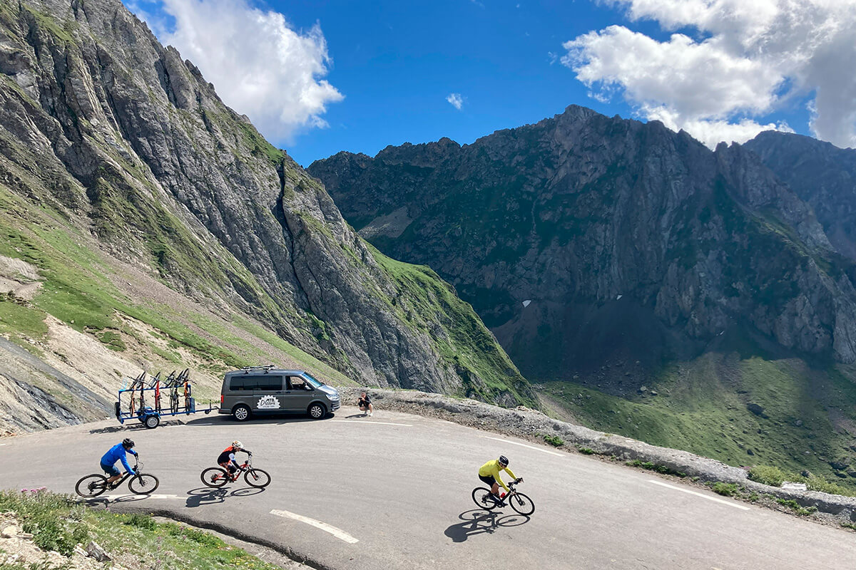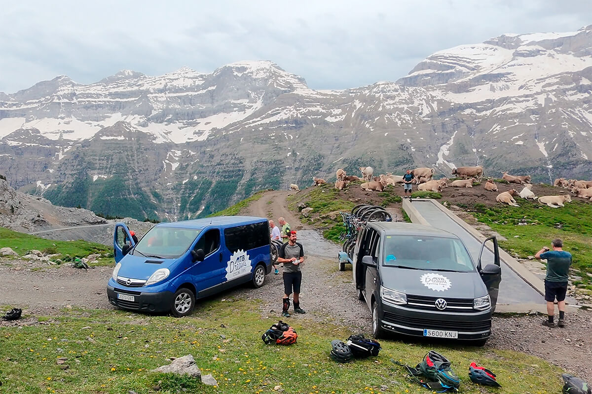 Optional road bike riders may climb Col du Luz-Ardiden, another Tour de France classic, before switching back to MTB.